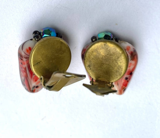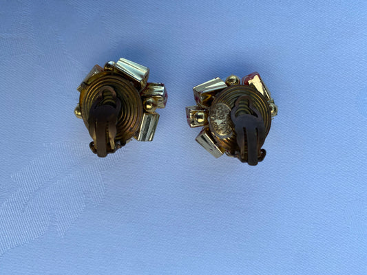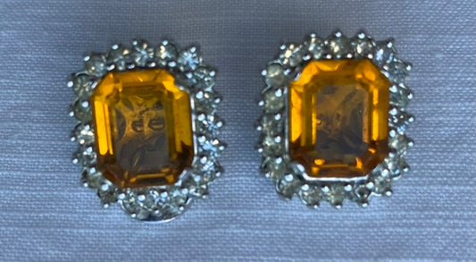 1950's Quality Classic Design Amber and Diamanté Earrings