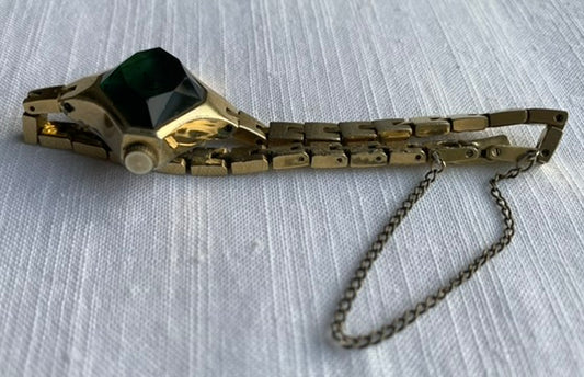 Rare 1970'S Fine Emerald Green Diamond Cut Facade Wristwatch