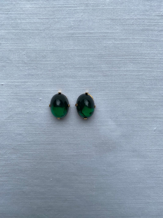 Emerald Cabochon Diamond Cut 1950's Earrings