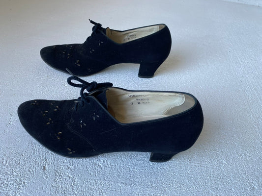 1940's Black Suede Lace Up Heels