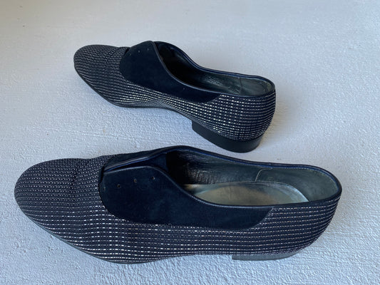 1980s Egidio Ghetti Suede & Silver Lame Loafers