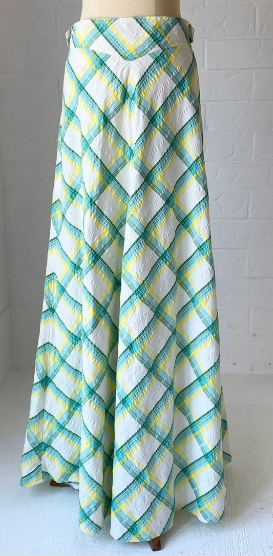 70s Seersucker Chevron Check Maxi Skirt