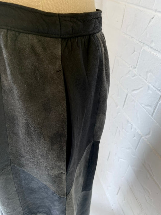 1980s Black Suede Patch Work A Line Skirt