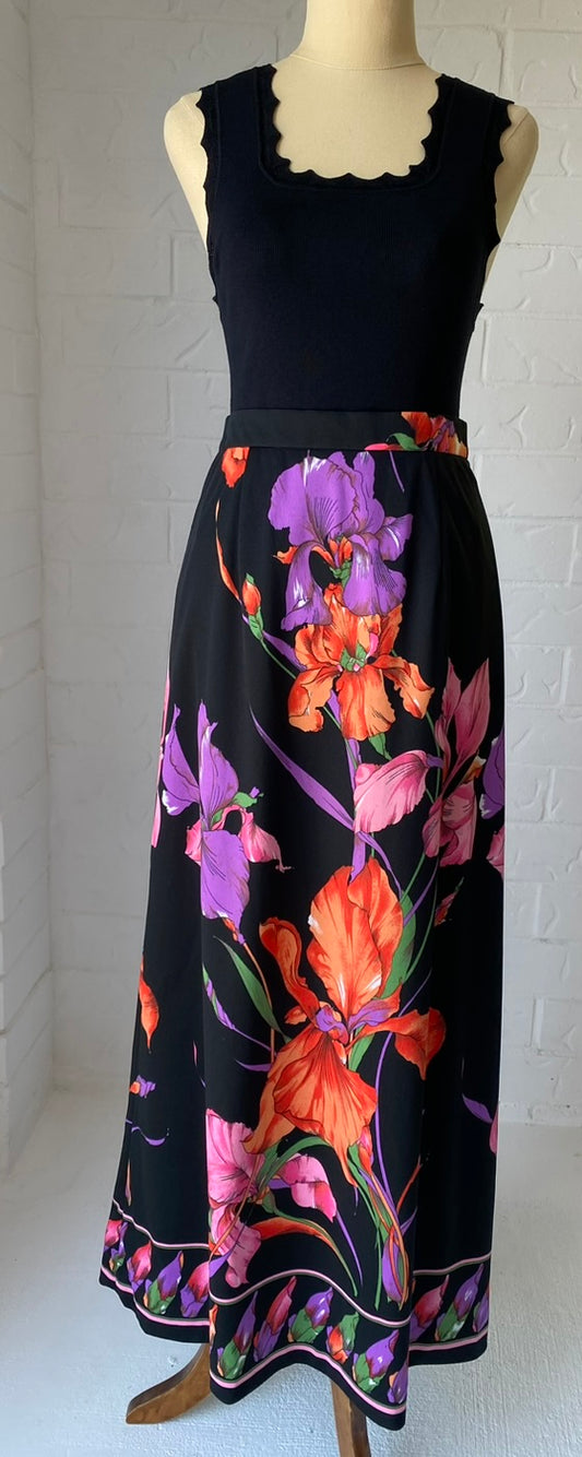 1970's Vintage KIO Floral Maxi SKirt + Fringed Tie/ Scarf