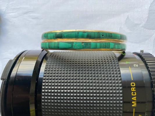 Vintage Brass Bangles Inlaid with Malachite Stone