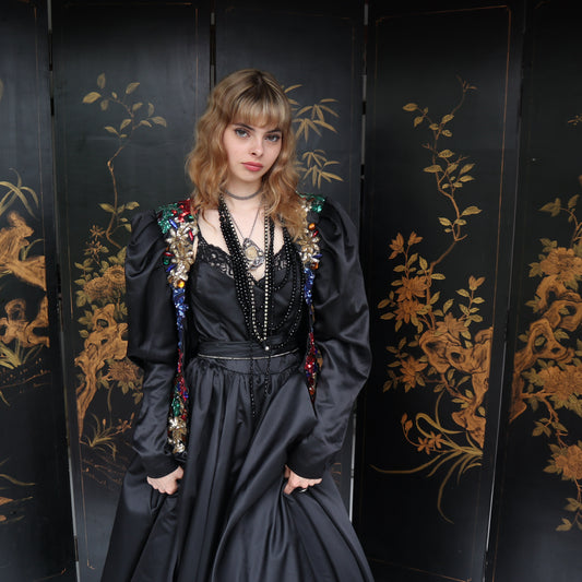 Inspired by Vivienne Westward, combining quality vintage suiting in the 1920's Tailcoat with a classic 1970's wool Tartan A line skirt, mixed with a Kiss t-shirt and a Bella Carew spin on a sporran come purse. Rock this look complete or mix it up with your own choice for rock T and accessories - see all items listed individually.