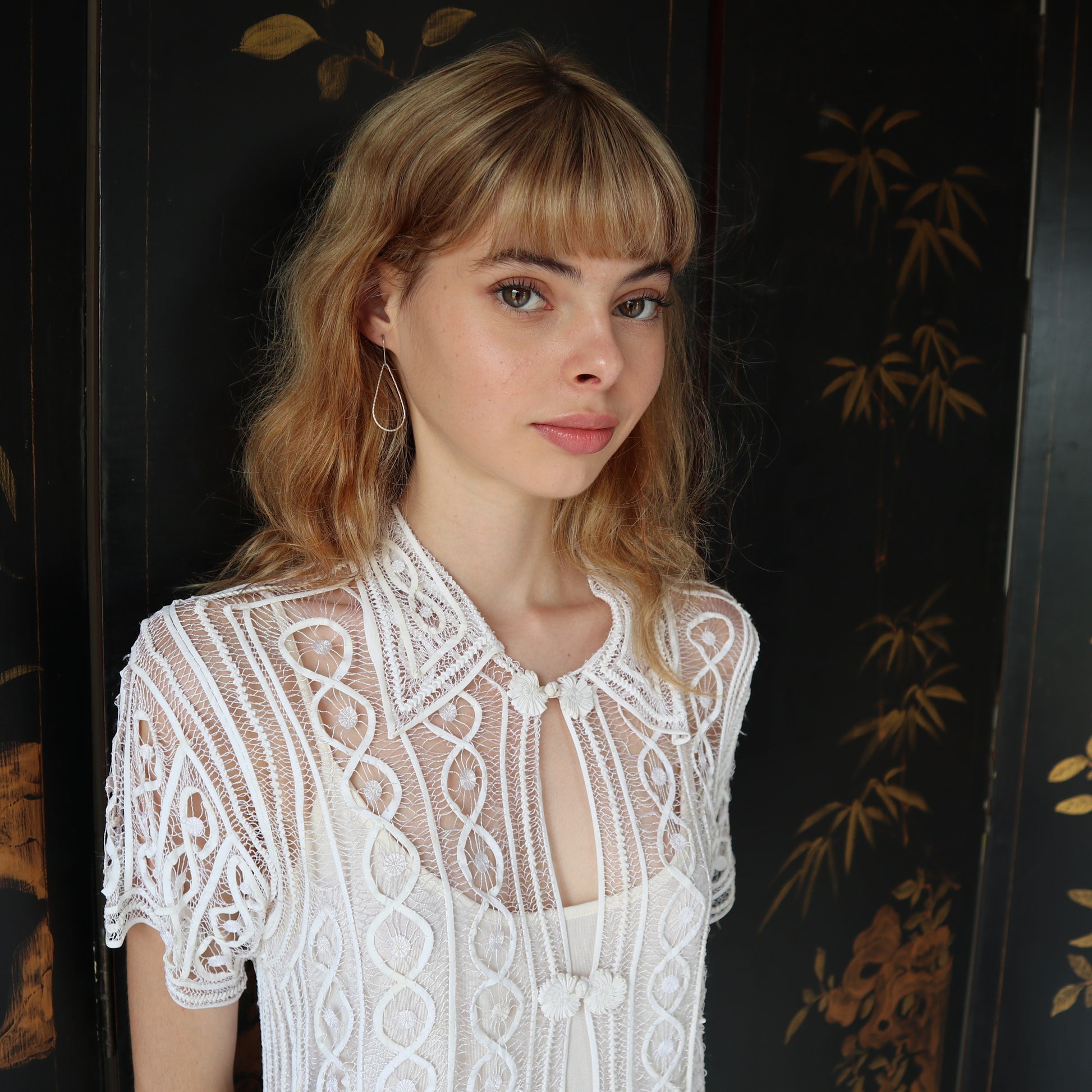Holly wears 60’s Bobbin Lace Top, see individual listing for more pictures and details.