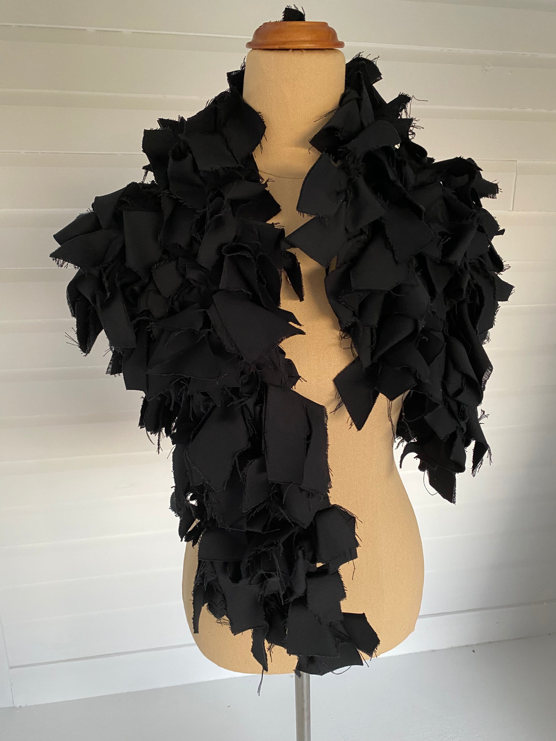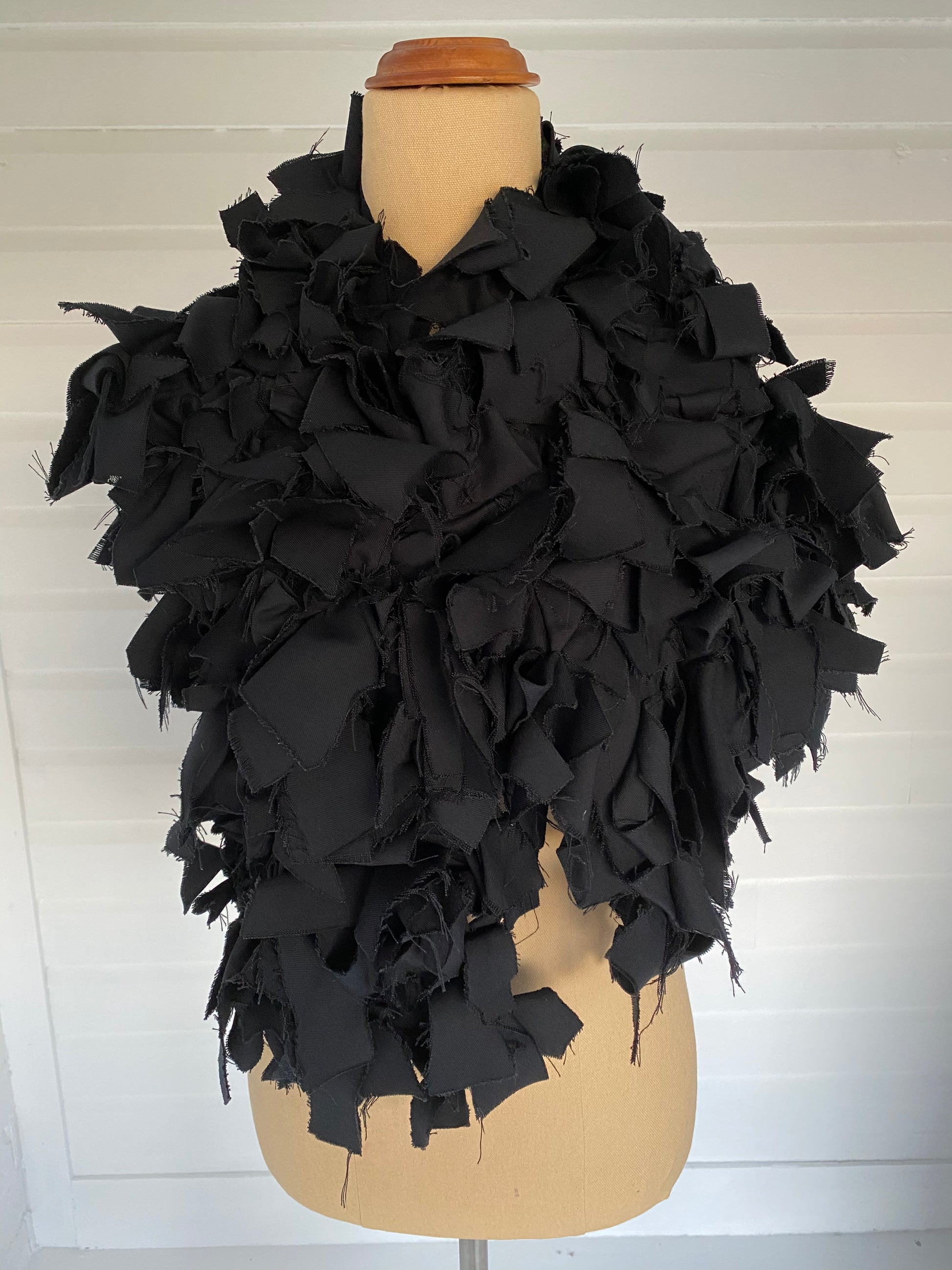 A truly unique and beautifully constructed contemporary, 90's, black, raw cut bolero jacket by Dutch designer Sonja Ayal.